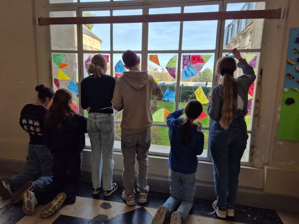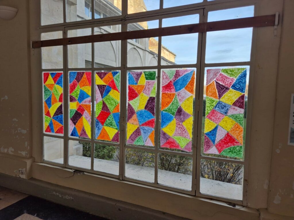 Avec les élèves du primaire, nous avons créé un tableau sur lequel nous avons dessiné un grand arbre de vie sur lequel nous avons accroché des croix en origami réalisées par les enfants. Sur ces croix ils ont inscrit ou non un message qu’il souhaite partager.